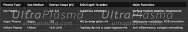 • UltraPlasma™ Arc Plasma Mode (4.5–5.5 eV): Provides thermal ablation and superficial epidermal resurfacing.